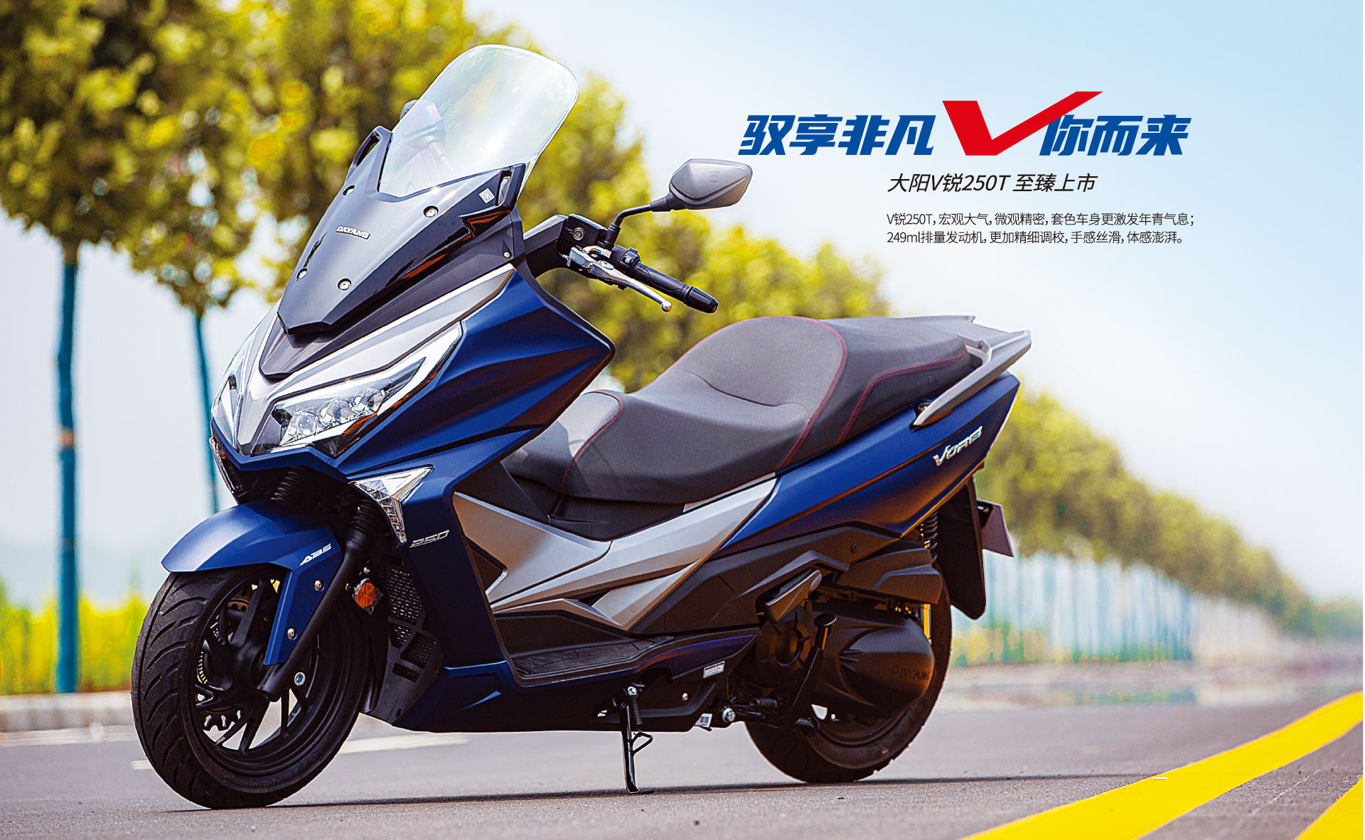 V銳250T搭載了249cc排量水冷四氣門發(fā)動(dòng)機(jī),充沛動(dòng)力游刃有余。最大功率:17kW/7000r/min,最大扭矩:23.5N.m/6000r/min。匯集葉盛電噴、汽車級(jí)博世十代ABS、高位進(jìn)氣、搖臂滾子軸承等先進(jìn)技術(shù),且采用了DID鏈條、NOK油封、三之星雙面齒皮帶、NTN軸承等多處進(jìn)口件,耐磨性佳,有效延長發(fā)動(dòng)機(jī)使用壽命。