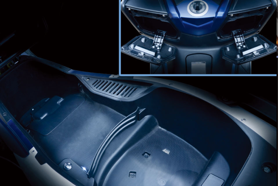 尾部可充分放置3/4安全頭盔及其他物件,配備了光感式置物箱燈設(shè)計(jì),滿足夜間取物照明需要;前部還搭配了雙儲(chǔ)物盒設(shè)計(jì),輕松容納隨時(shí)所需。